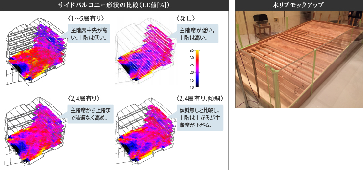 音響シミュレーション:バルコニー形状の違いによる側方反射音の違い