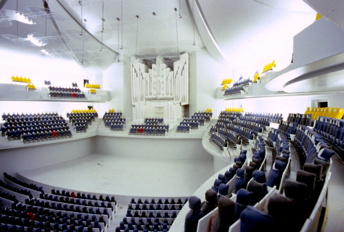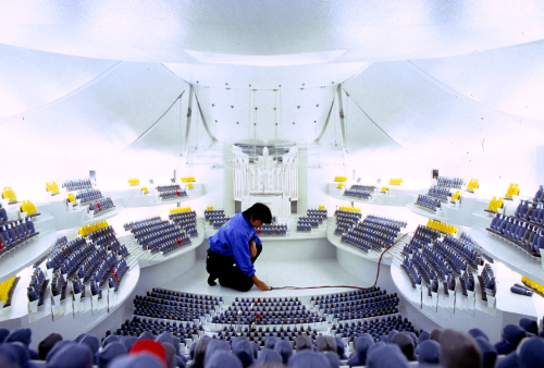 室内音響の模型実験では、残響時間・音圧レベル分布をはじめ、各種の聴感的物理量により音場の評価を行いますが、最終的には実際にホールで演奏されたときの楽音等を、直接耳で聴いて判断する必要があります。ここではデジタル処理技術を用いた聴感評価実験手法をご紹介します。